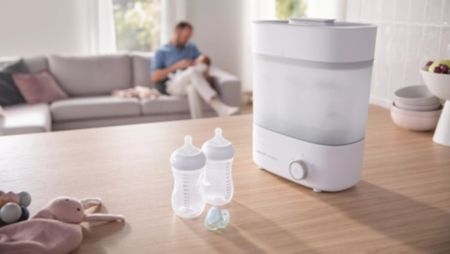 Elektryczny sterylizator to najbardziej zaawansowane technologicznie rozwiązanie. Jaki sterylizator wybrać? Urządzenia te często łączą funkcję sterylizacji z suszeniem, a niektóre modele działają również jako podgrzewacz. Podgrzewacz ze sterylizatorem to praktyczne rozwiązanie, które oszczędza miejsce. Proces sterylizacji w takim urządzeniu jest w pełni automatyczny – wystarczy wlać wodę i nacisnąć przycisk. Dzięki funkcji automatycznego wyłączania, nie trzeba kontrolować czasu dezynfekcji. To również najbardziej uniwersalne rozwiązanie, do którego działania potrzebujemy wyłącznie dostępu do gniazdka elektrycznego. Sprawdza się w podróży czy u rodziny, a stosunkowo niewielkie rozmiary sprawiają, że nie utrudnia przemieszczania się.