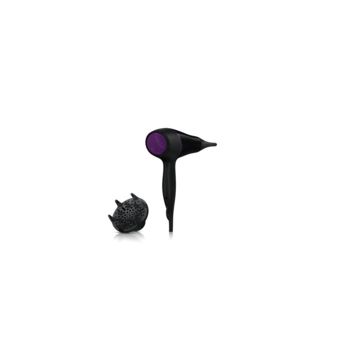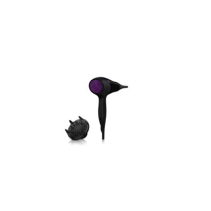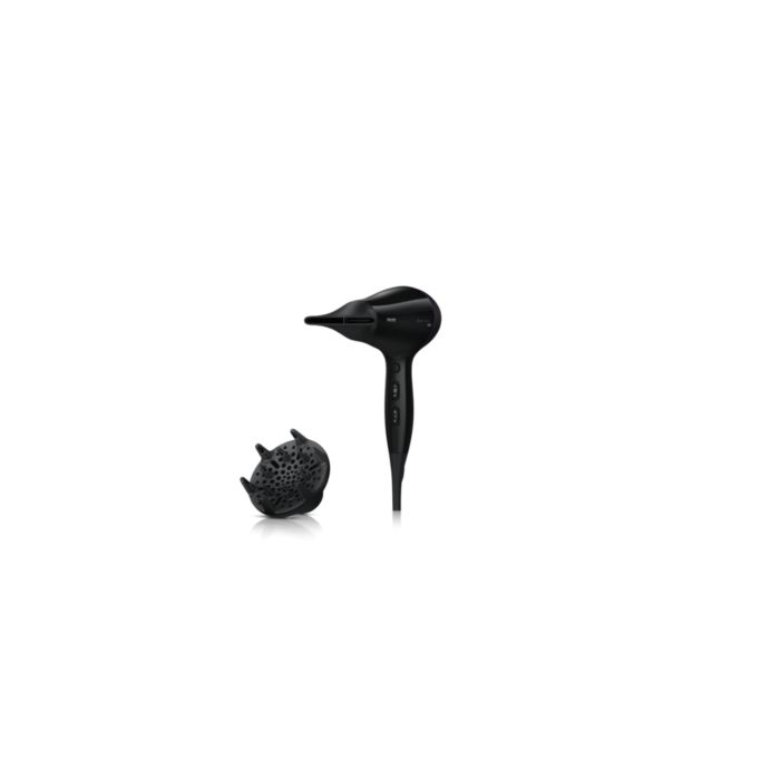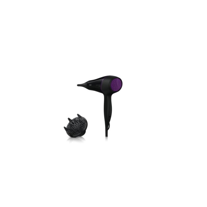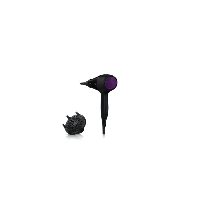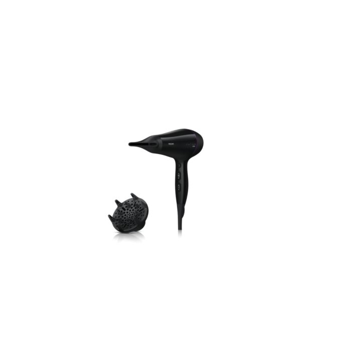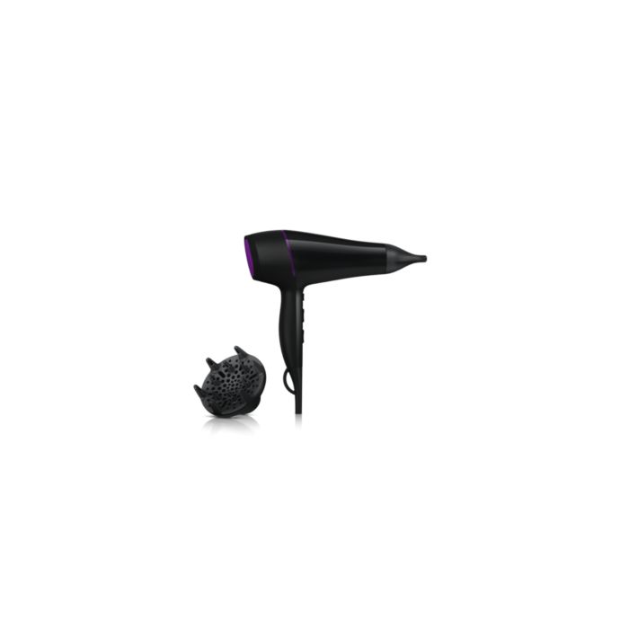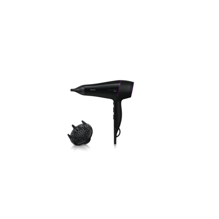 Suszarka Philips DryCare Pro AC jest wyposażona w profesjonalny silnik AC, który sprawia, że powietrze porusza się z prędkością nawet 95 km/h, dzięki czemu urządzenie zapewnia szybkie i profesjonalne rezultaty. Można wygodnie suszyć włosy tą lekką suszarką, którą łatwo się manewruje.