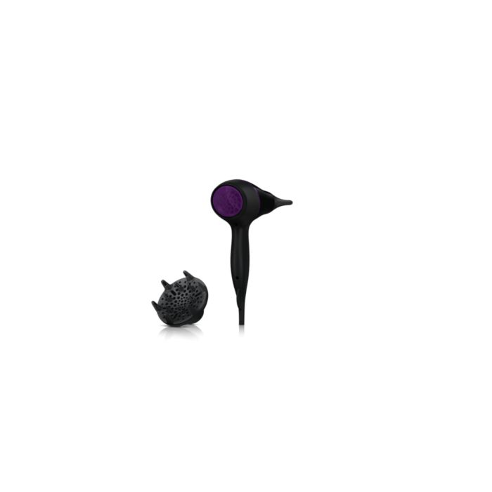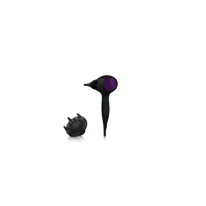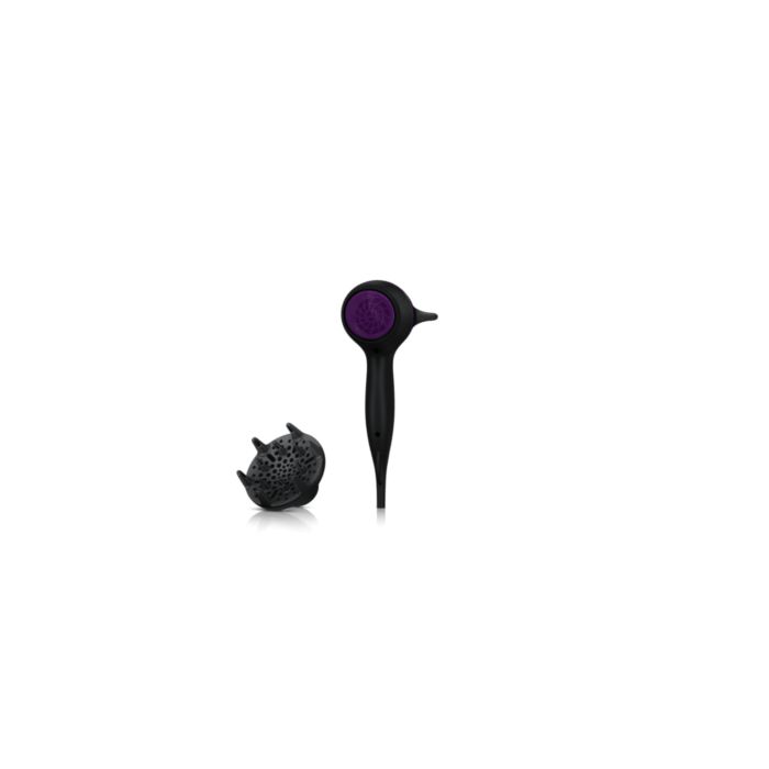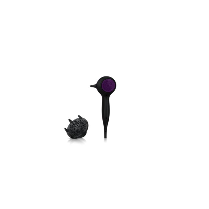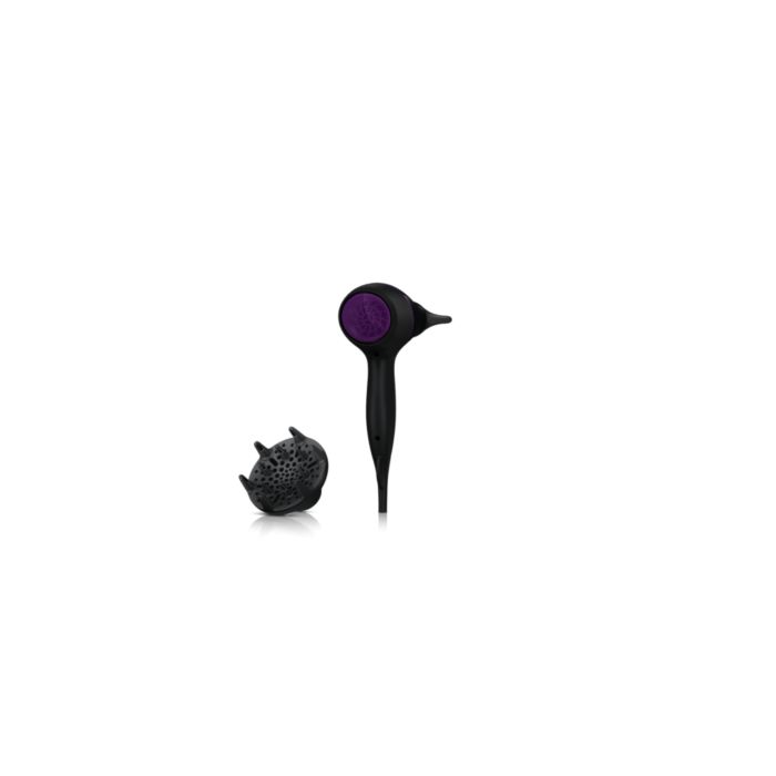 Dyfuzor rozprowadza strumień powietrza po włosach, zwiększając ich objętość i zmniejszając puszenie podczas suszenia. Aby uzyskać najlepsze rezultaty, trzymaj dyfuzor blisko skóry głowy, przy cebulkach włosów. Delikatne wypustki masujące dyfuzora zwiększają objętość, maksymalizują grubość, sprężystość i ułatwiają układanie loków.